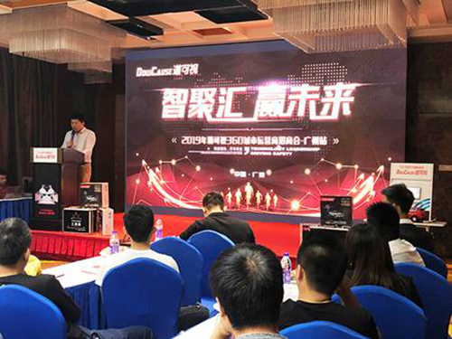 會議伊始,道可視廣東代理、廣州御卡汽車用品有限公司總經理陳彥豪先生首先發表了致辭,他對到場嘉賓的蒞臨表示熱烈的歡迎,并介紹了當前360°全景的市場發展情況,表示在道可視的政策支持和強大產品支撐下,2019年的市場前景不可估量。最后,還與現場嘉賓分享了《我們如何賺錢》的主題演講。